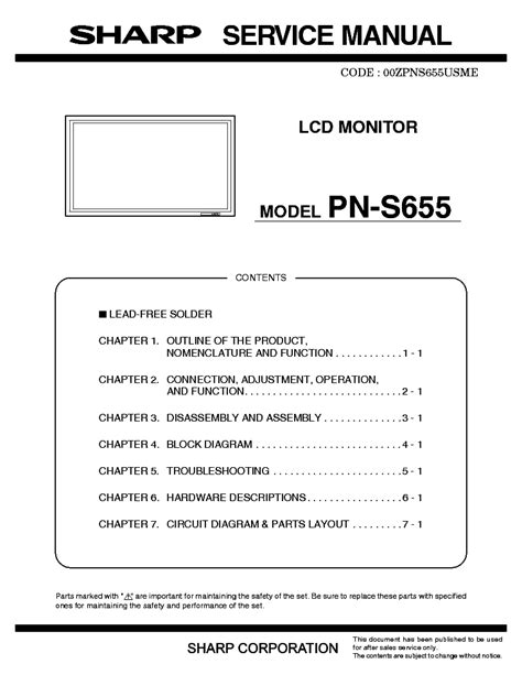 Read Online sharp pn s655 lcd monitor service manual Kindle Editon Internet Archive